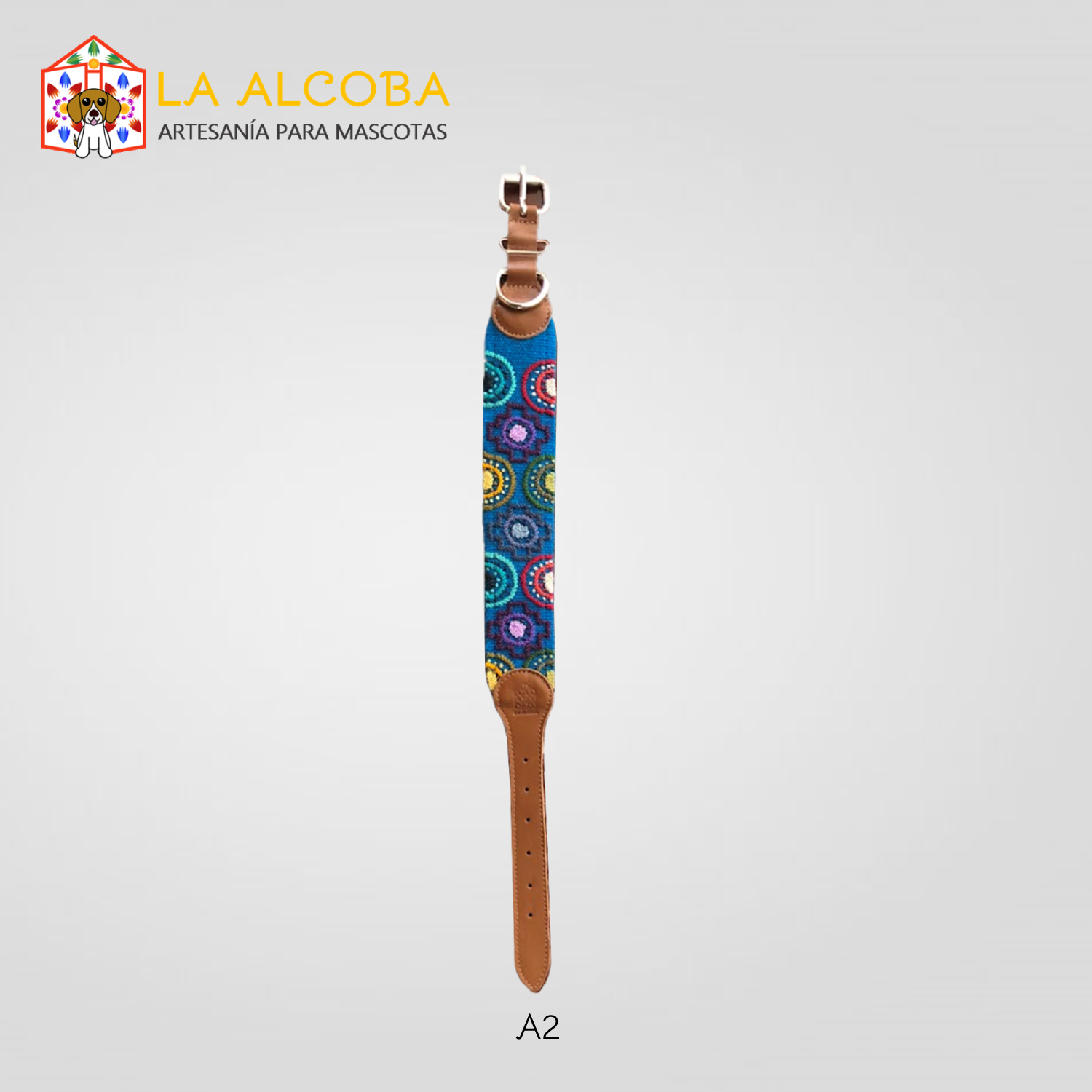 Hecha sobre base de cuero. Las aplicaciones son bordadas sobre telar hecho a mano. Diseño típico de Huanta – Ayacucho. Hecha por artesanos de Huanta – Ayacucho.