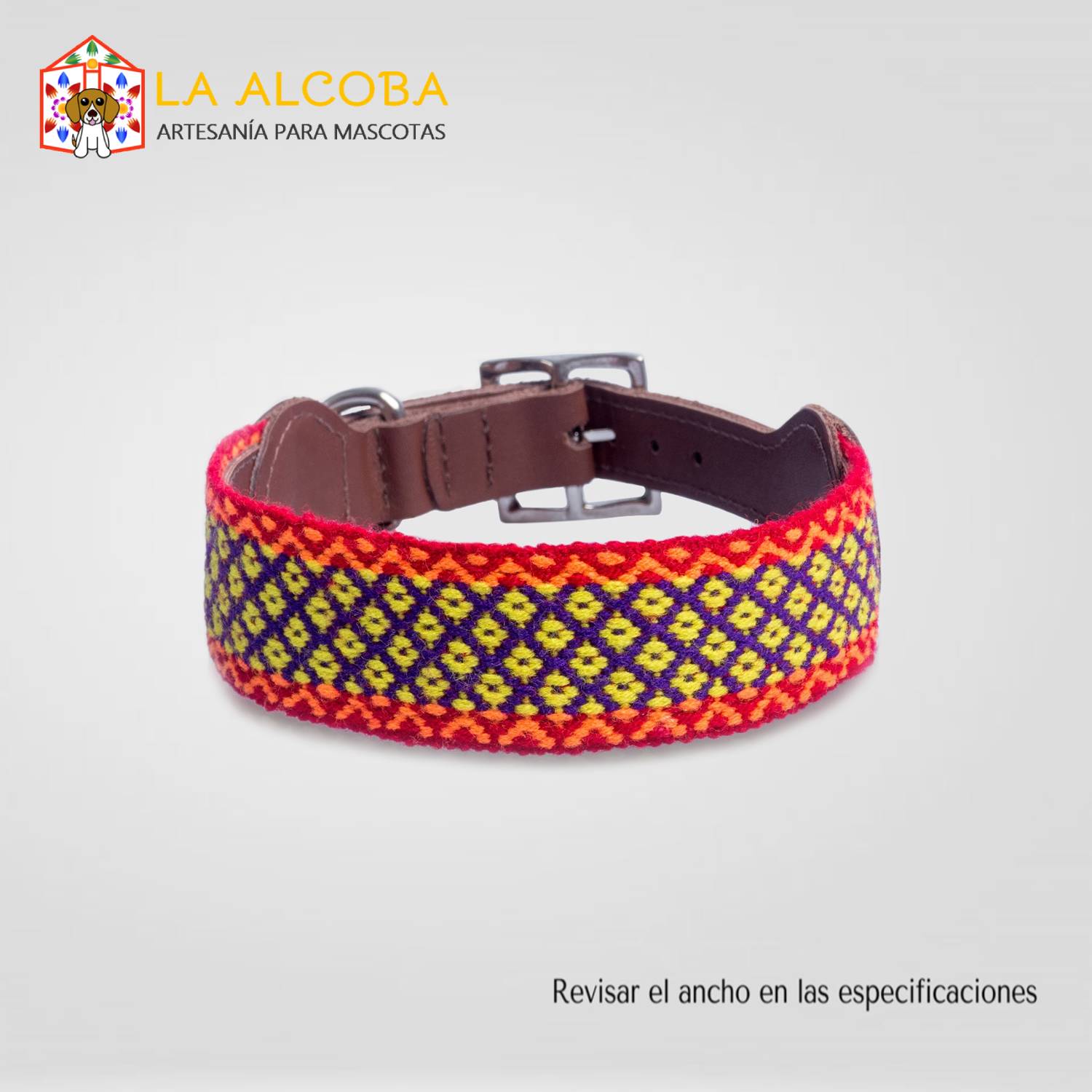 Hecha sobre base de cuero con aplicaciones tejidas a mano en telar. Diseño de Huamachuco – La Libertad.