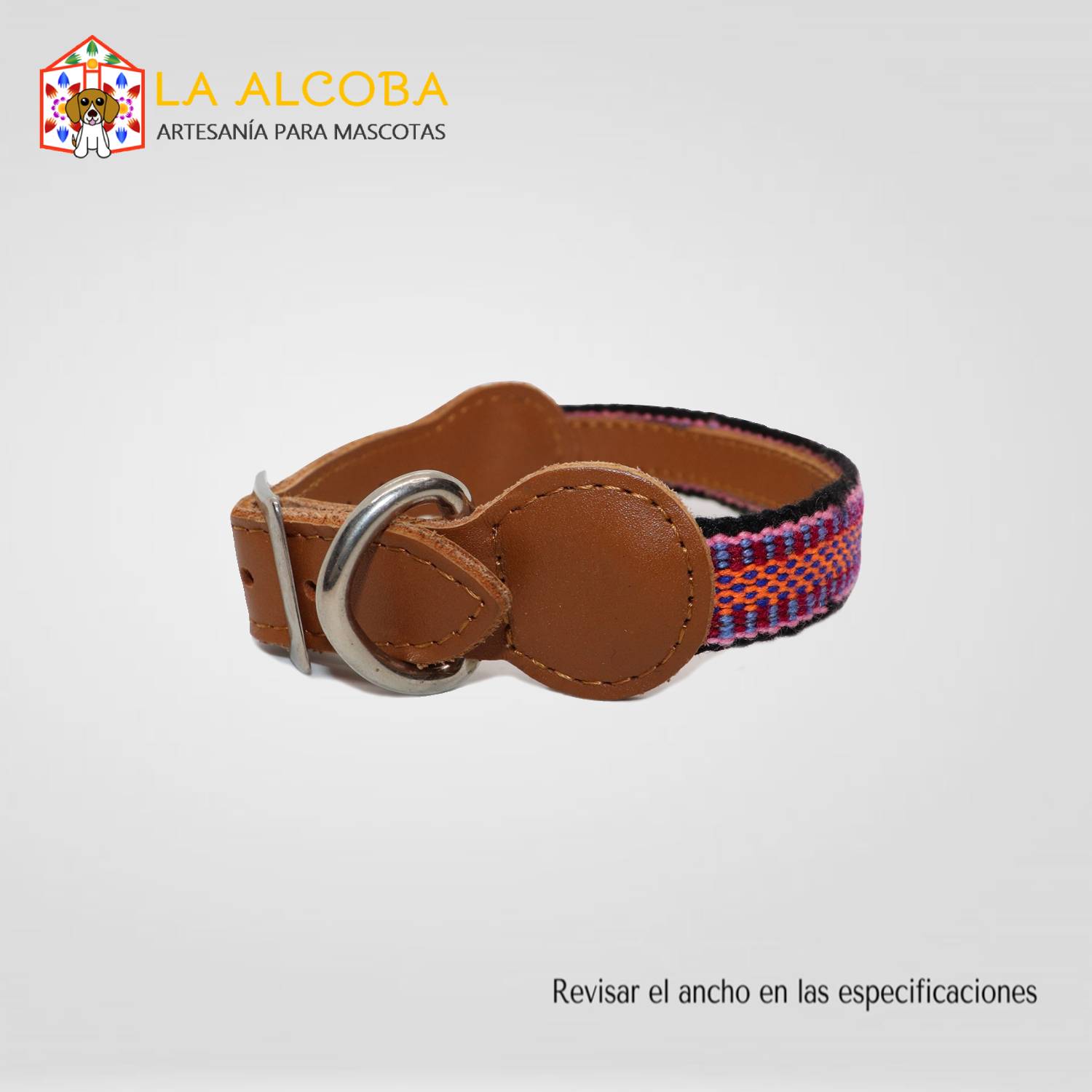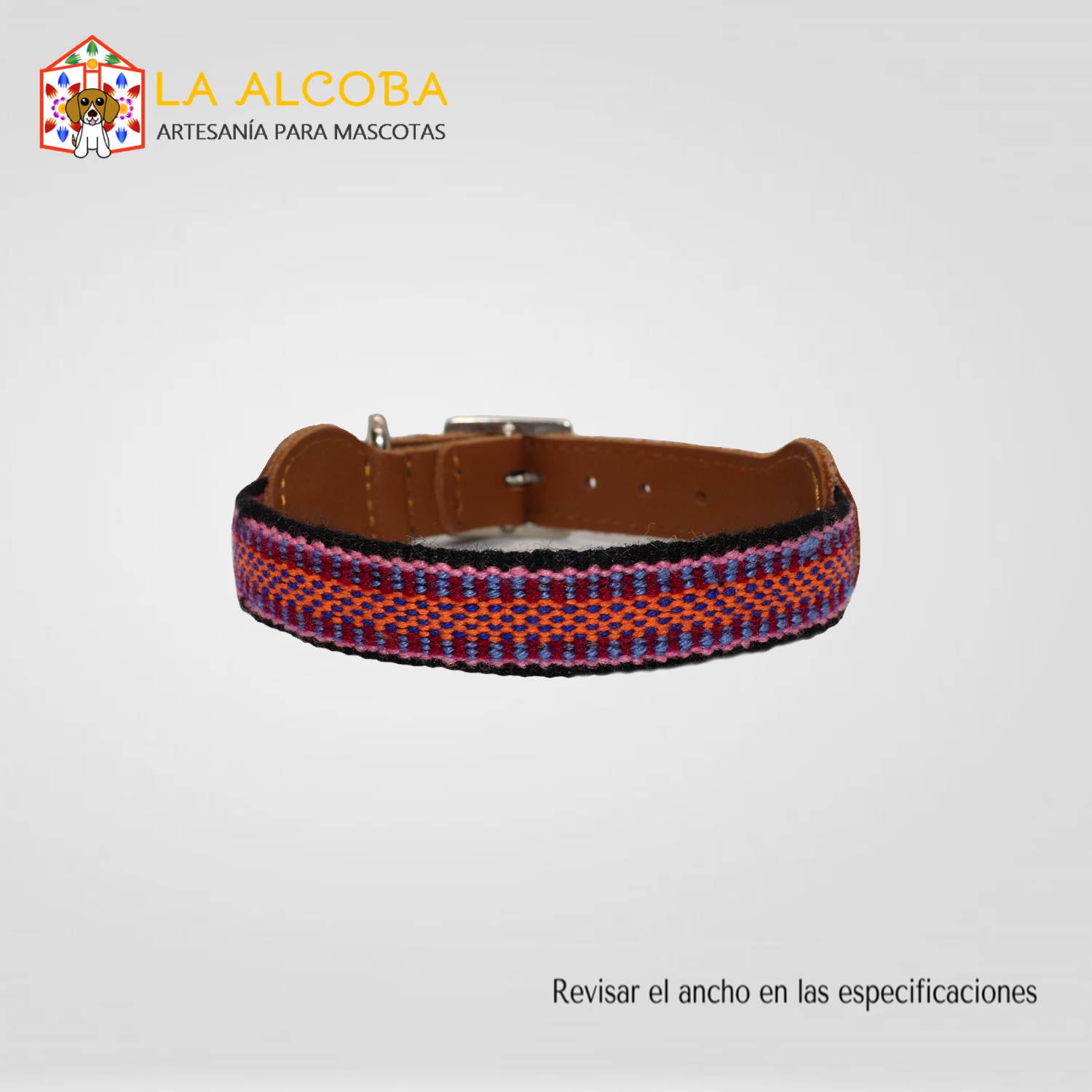 Hecha sobre base de cuero con aplicaciones tejidas a mano en telar. Diseño de Huamachuco – La Libertad.