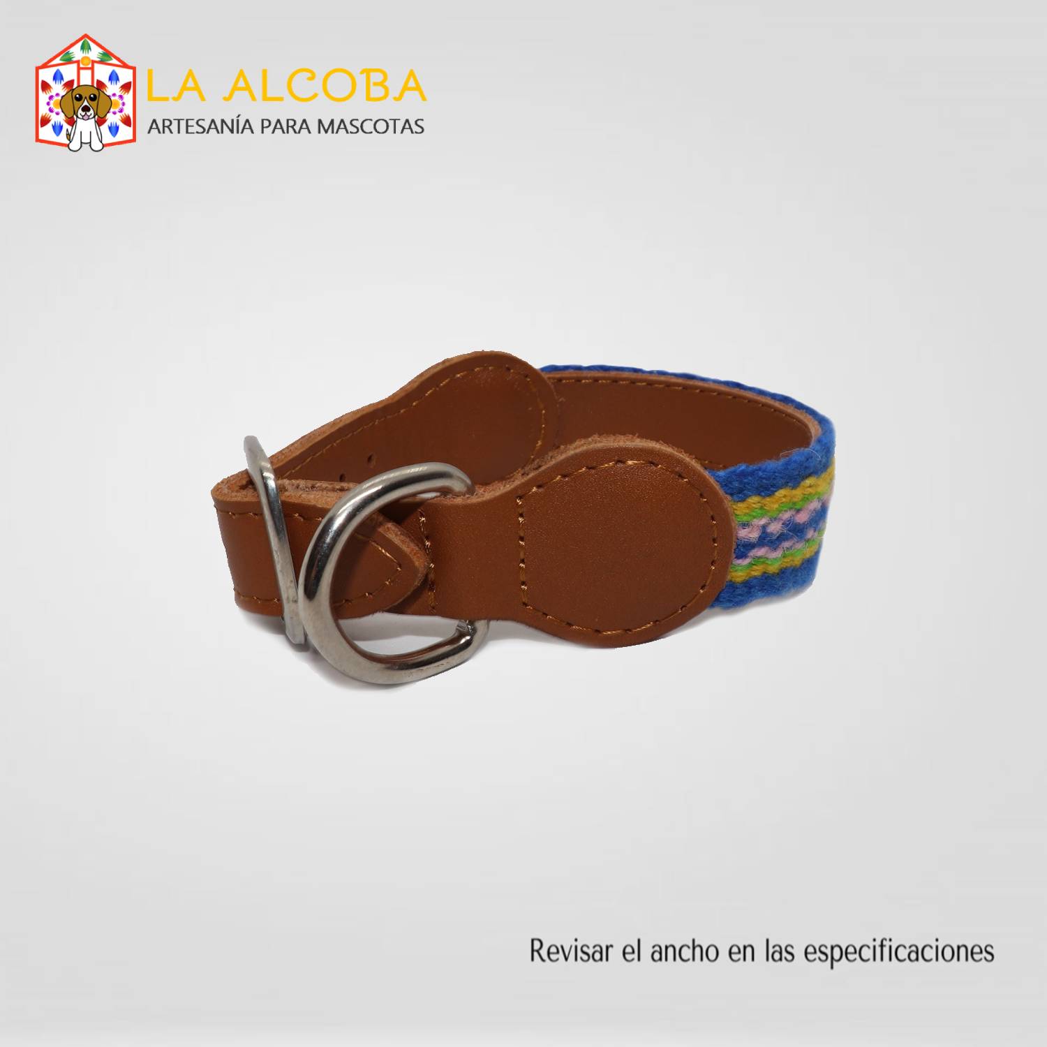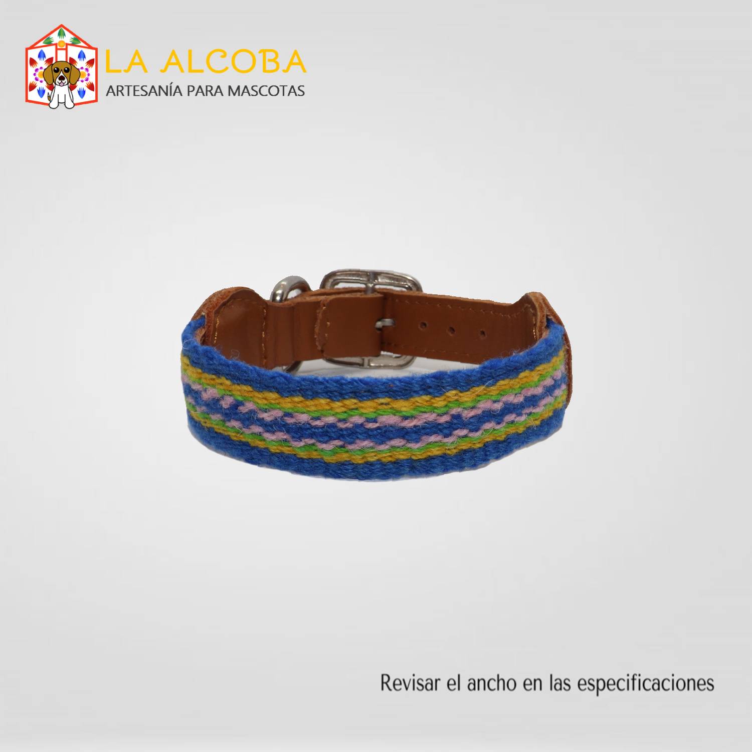Hecha sobre base de cuero con aplicaciones tejidas a mano en telar. Diseño de Huamachuco – La Libertad.